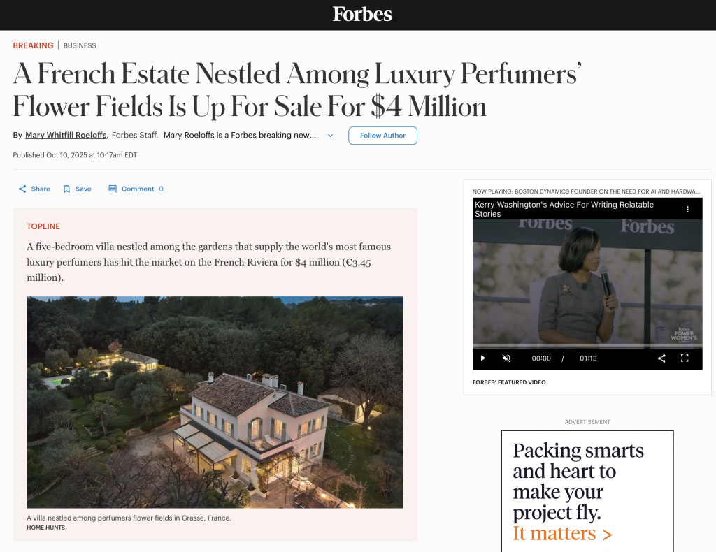 Forbes Magazine have published a great article this week about this stunning property for sale in Grasse with Home Hunts