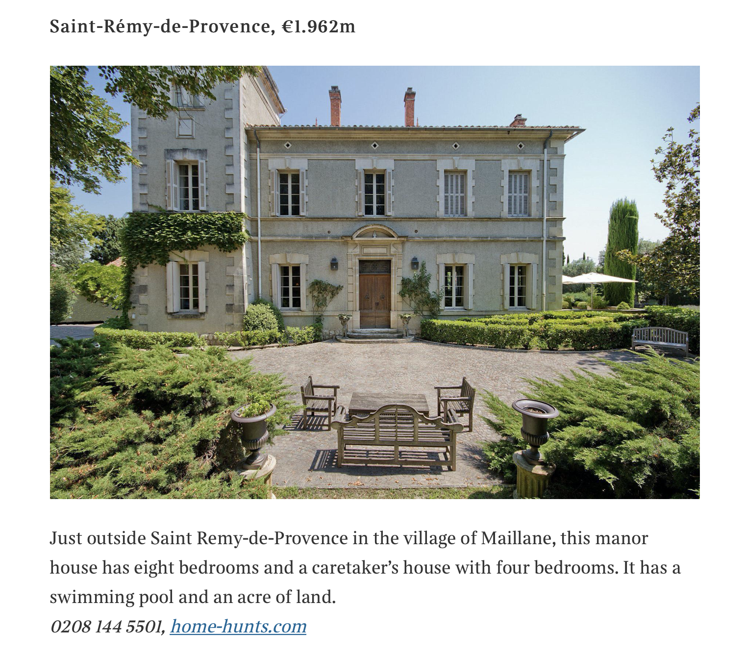 This recent article from the Sunday Times focuses on the stunning and popular location of Les Alpilles in Provence. Home Hunts’ Provence Manager Nicola Christinger  spoke to the newspaper on several occasions with regards to this area, she is quoted in the piece along with some of Home Hunts clients, there are also a couple of beautiful properties from Home Hunts. It is a really interesting article which gives a great feel for this popular area.
